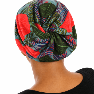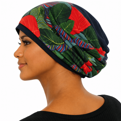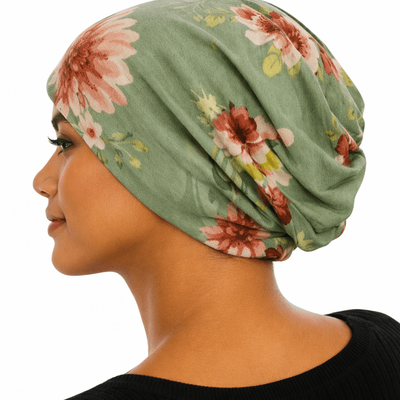 When worn as a headcover beanie, the Helene 4 in 1 Beanie shows a swirly back with increased volume, which creates an illusion of a head full of hair being tucked under.