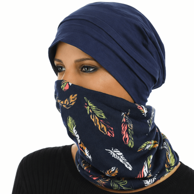 The Helene 4 in 1 Beanie is constructed with soft feel jersey polyester fabric, which is super soft and comfy. It is gentle on your neck skin or bold head.